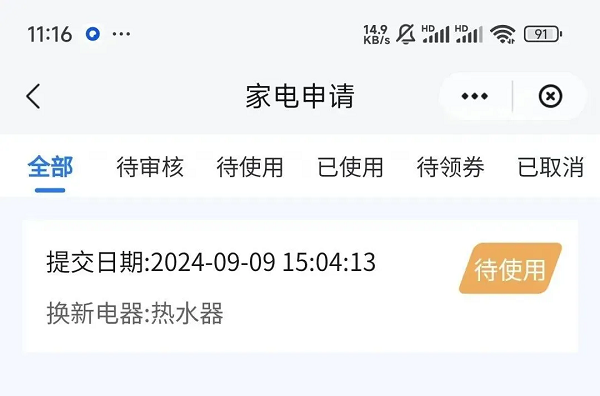 【查看補(bǔ)貼券】用戶點擊進(jìn)入“補(bǔ)貼券狀態(tài)查詢”界面,可以查看已領(lǐng)取的補(bǔ)貼券及其狀態(tài)。